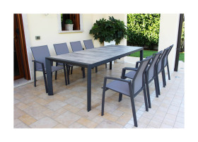 Tavolo da giardino POSSAGNO in alluminio ANTRACITE allungabile 175 / 235 x 100 con piano gres effett