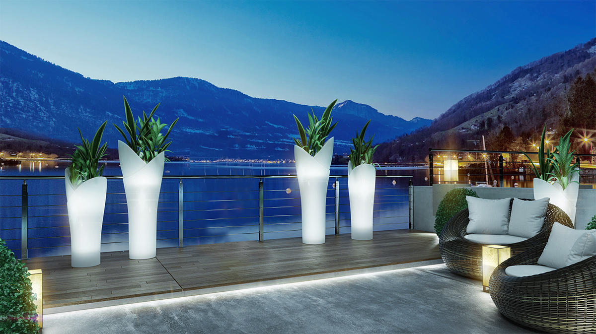 Raffinato ed elegante, ASSIA è un vaso cache-pot a colonna con luce dal fascino inconfondibile. Le sue forme armoniche simili ad un tulipano, fanno di ASSIA un valido alleato nel creare ambientazioni uniche, sia in contesti di interior design che nell'arredo di spazi outdoor. La luce, che si espande uniformemente in tutta l'altezza del vaso, crea atmosfere soffuse, ideali per momenti di relax in giardini privati o eventi contract. Ottimo con piante e fiori a cascata.