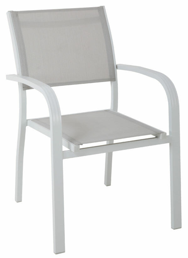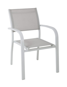 Alluminio BIANCA con braccioli - textilene GRIGIO CHIARO impilabile