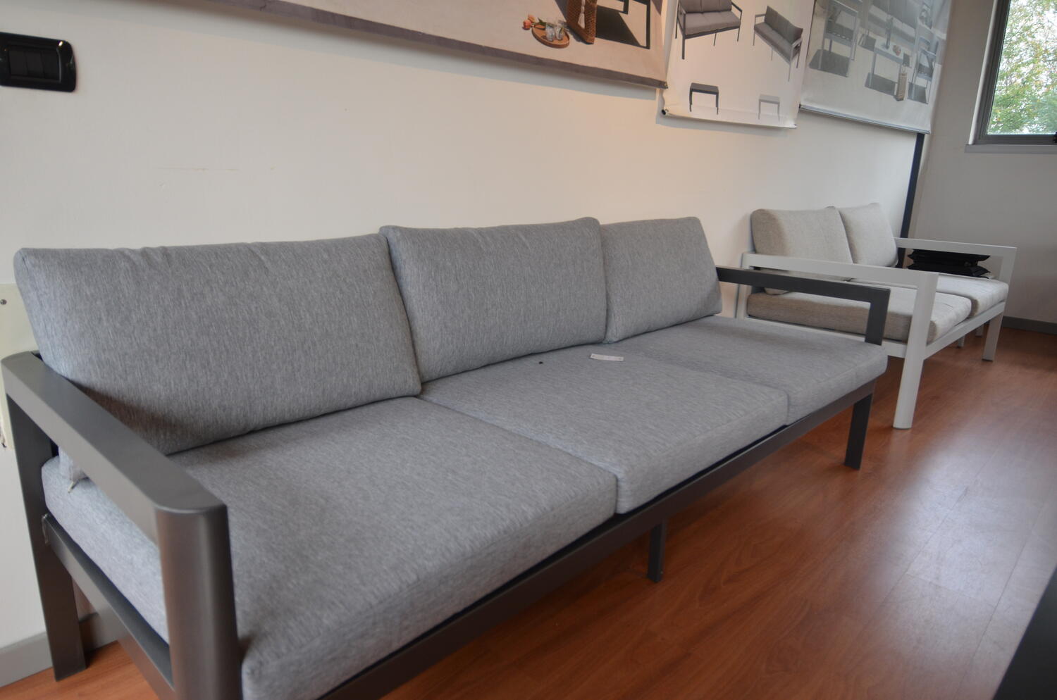 • DIVANO 3 POSTI in alluminio verniciato per esterni di colore grigio antracite.
