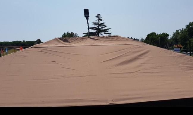 particolare del gazebo, la punta del gazebo non termina a punta ma una punta larga circa 100 cm, ovvero doppia punta