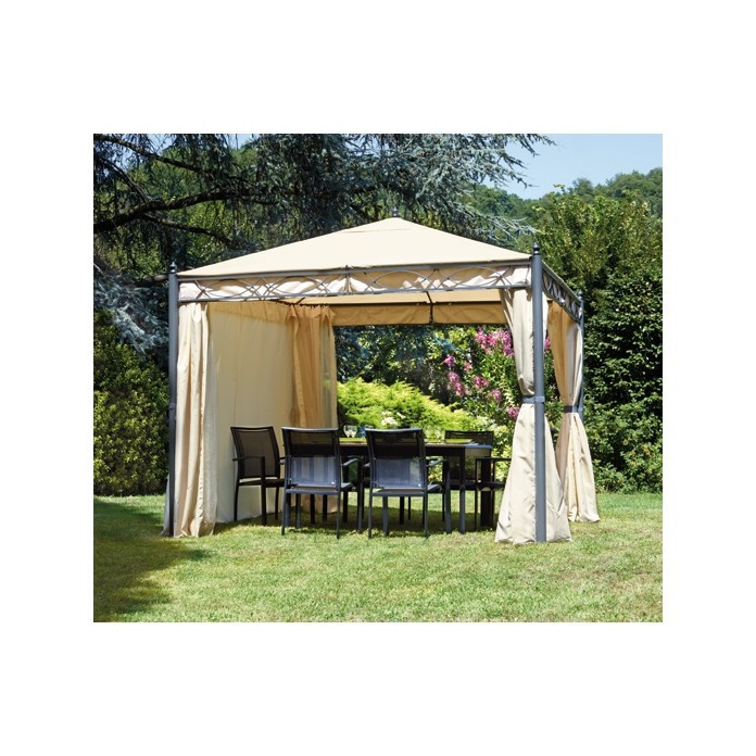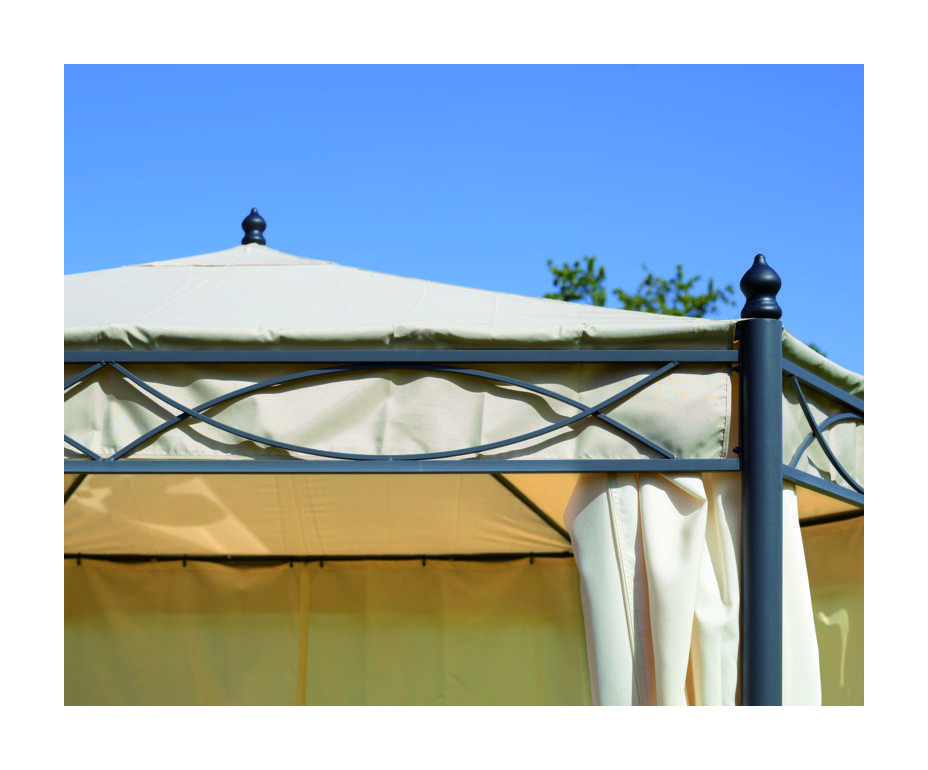 Elegante gazebo da giardino con struttura in Ferro color antracite, completo di tende.