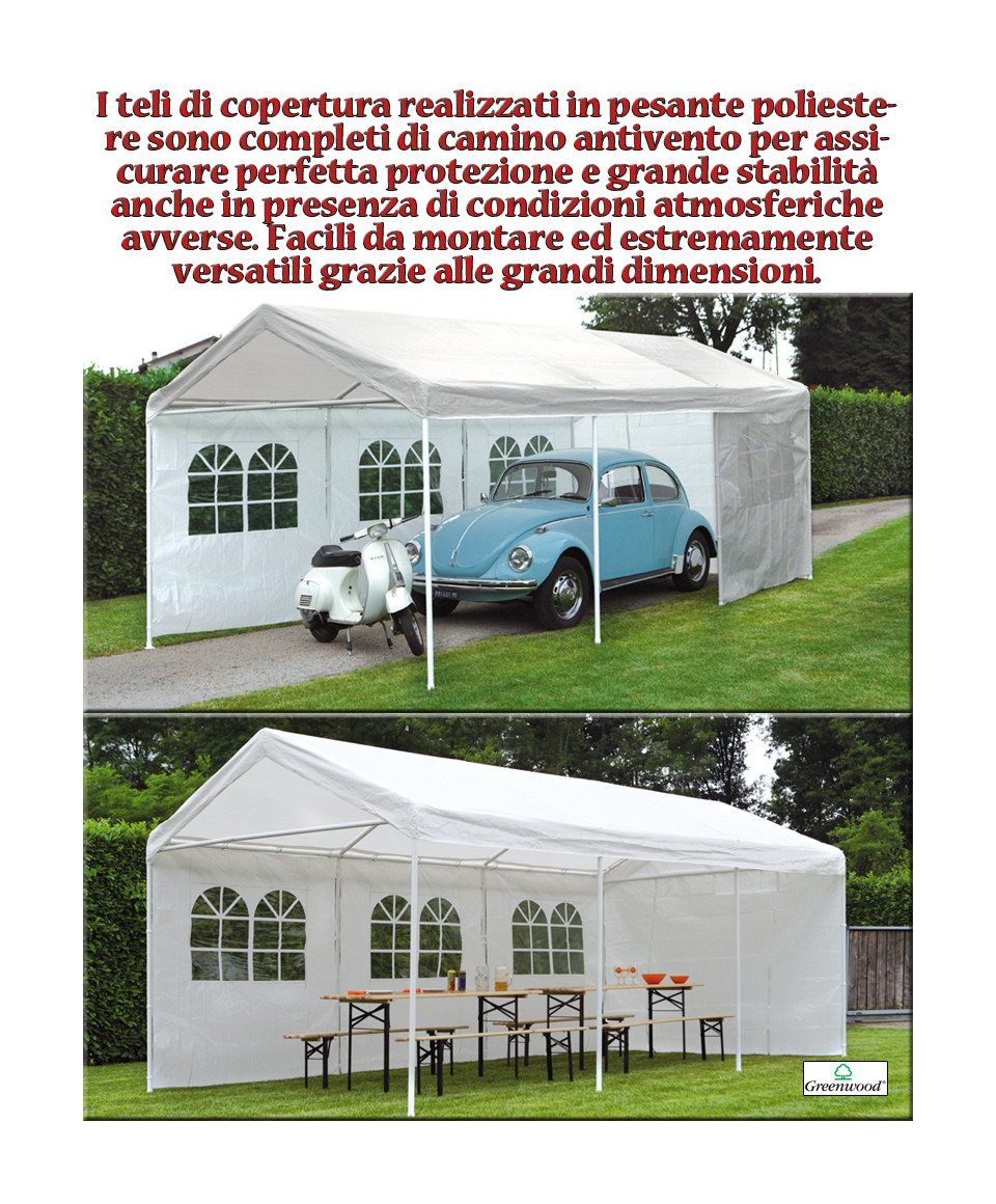 Il Gazebo Car Parking è adatto ad essere inserito in giardini e cortili, ove ci sia la necessità di proteggere le automobili dal sole e dagli agenti atmosferici.