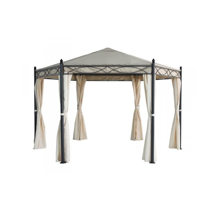 GAZEBO ESAGONALE ? 4 METRI STRUTTURA IN FERRO CON TELO IN POLIESTERE ECRU?