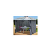Viene fornito con quattro tende laterali in poliestere con cerniera , questo gazebo soddisferà i capricci del tempo e le tue esigenze. Dalla primavera all'autunno diventerà uno spazio privilegiato unendo comfort e design, una stanza in più di cui non potrai più fare a meno. In inverno sarà il luogo ideale per riporre i tuoi mobili da giardino.