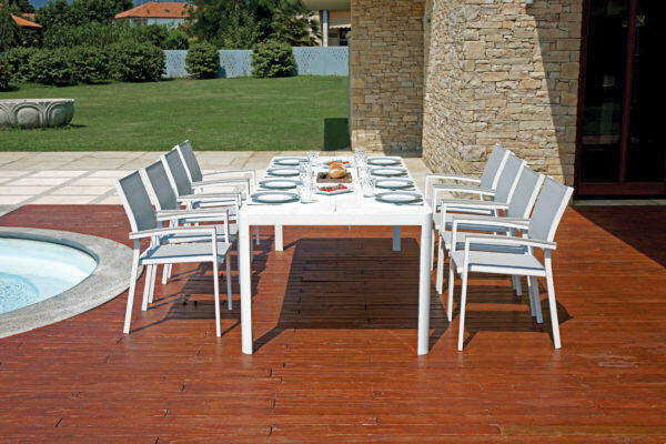 Resistente agli agenti atmosferici, facile da manutenere e ripulire, trova in giardini, bordo piscina e verande, la location perfetta per ospitare cene di famiglia o tra amici.