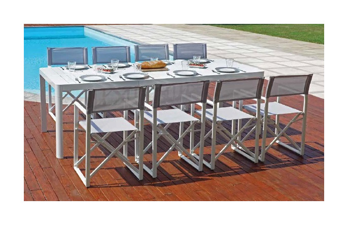 Grazie a volumi equilibrati e forme nette, il tavolo , arreda con moderna eleganza gli ambienti outdoor. La prolunga lo rende un complemento ideale e versatile per tutte le occasioni, formali e informali.