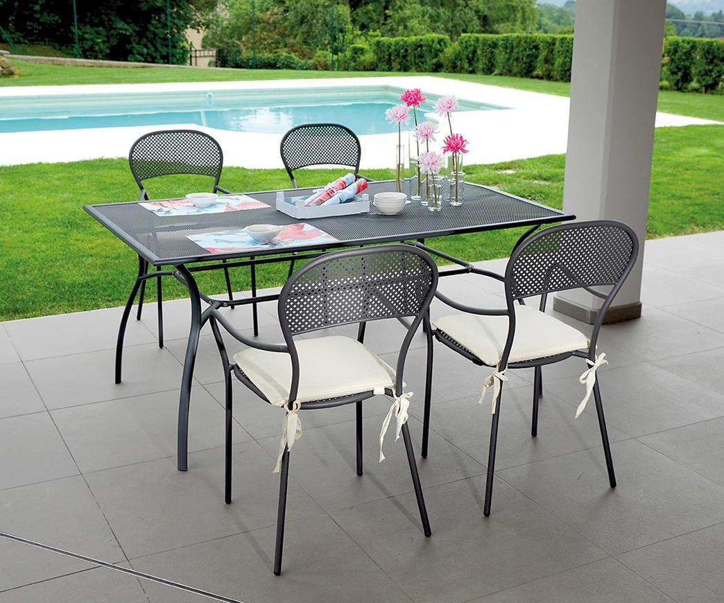 Tavolo Ameno 160x100 cm - in ferro color grigio antracite - disegno rete - trattamento elettroforesi