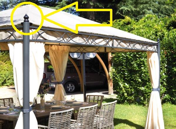 i pomelli sono posti sopra il gazebo per fissare il telo