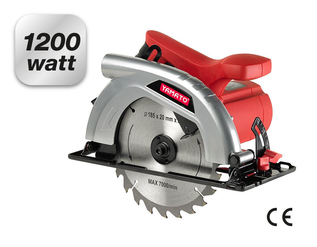 Caratteristiche: Avvolgimento motore in alluminio - Regolazione profondità di taglio - Taglio 90° (65 mm.). 45° (45 mm.) - Base inclinabile 45° - Impugnatura Soft Grip - Lama ? 185 mm.