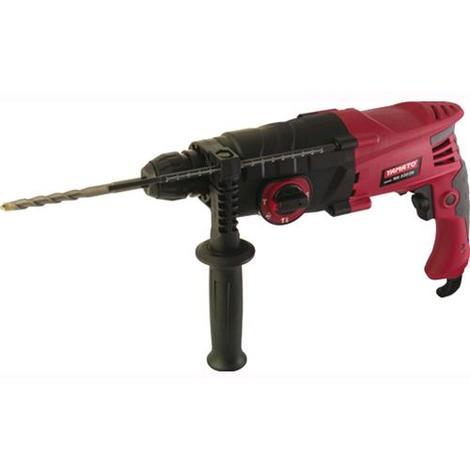 Caratteristiche: Attacco SDS-Plus - Variatore di velocità - Reversibile - 4 funzioni - Capacità max foratura: muro/ferro/legno ?26/13/30 mm. - Colpi al minuto 4.820 bpm - Peso 3,3 kg. - Dotazione: Valigetta in PVC, 3 punte SDS-Plus ?8x150 mm, ?10x150 mm, ?12x150 mm., scalpello a punta e a taglio 14x250 mm.