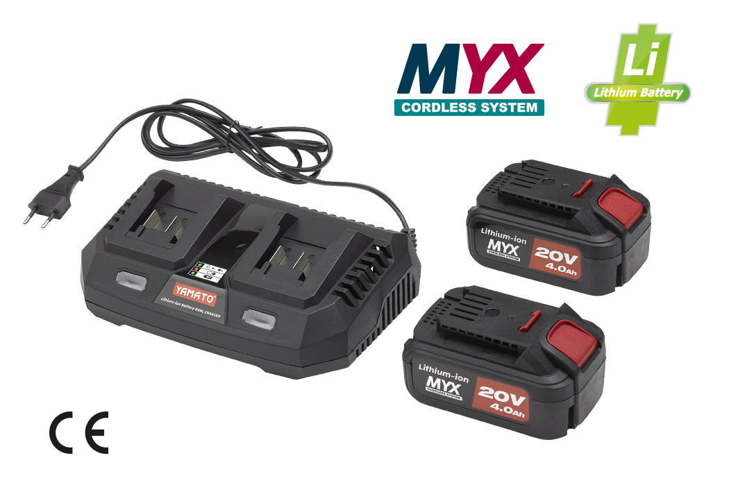 Il caricabatterie doppio universale CKT 2044 DUAL è progettato per garantire una ricarica rapida, sicura e simultanea di due batterie al litio della linea YAMATO MYX 20V. Il kit include 2 batterie da 20 Volt – 4,0 Ah ciascuna, ideali per assicurare autonomia prolungata e continuità di lavoro.