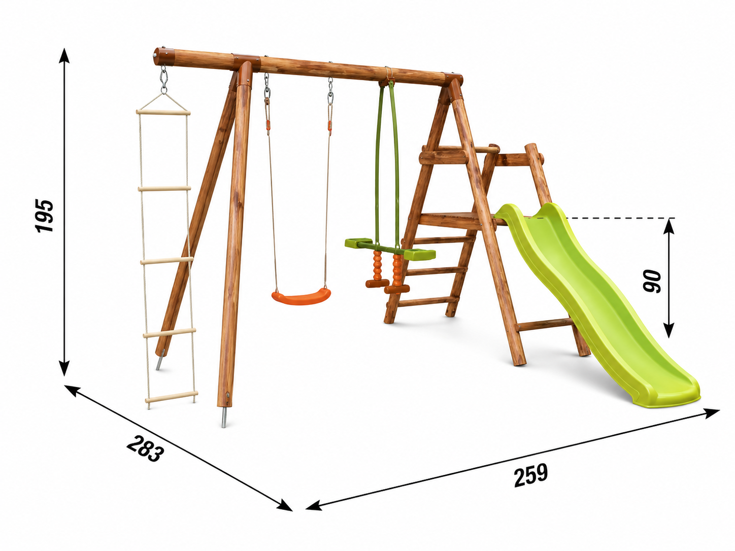 Il set MAGNOLIA è la soluzione ideale per chi vuole creare un parco giochi completo in giardino, combinando movimento, divertimento e varietà in un’unica struttura compatta e sicura.