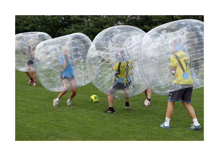 L?idea delle Happy Bumper Ball nasce da uno sport importato dall?America, in cui si gioca a calcio circondati per metà corpo da una sfera ad aria, che protegge da urti e possibili scontri sul campo.