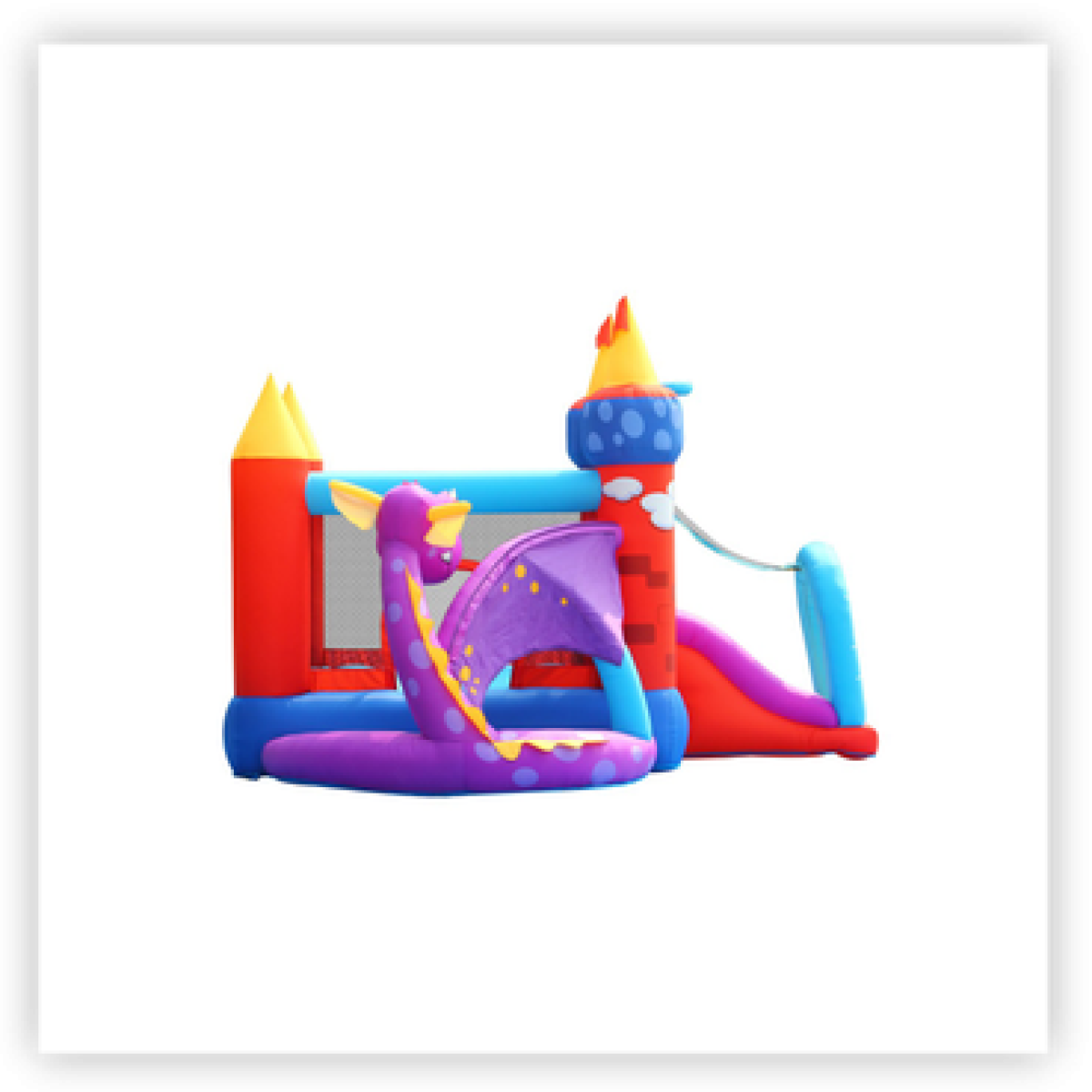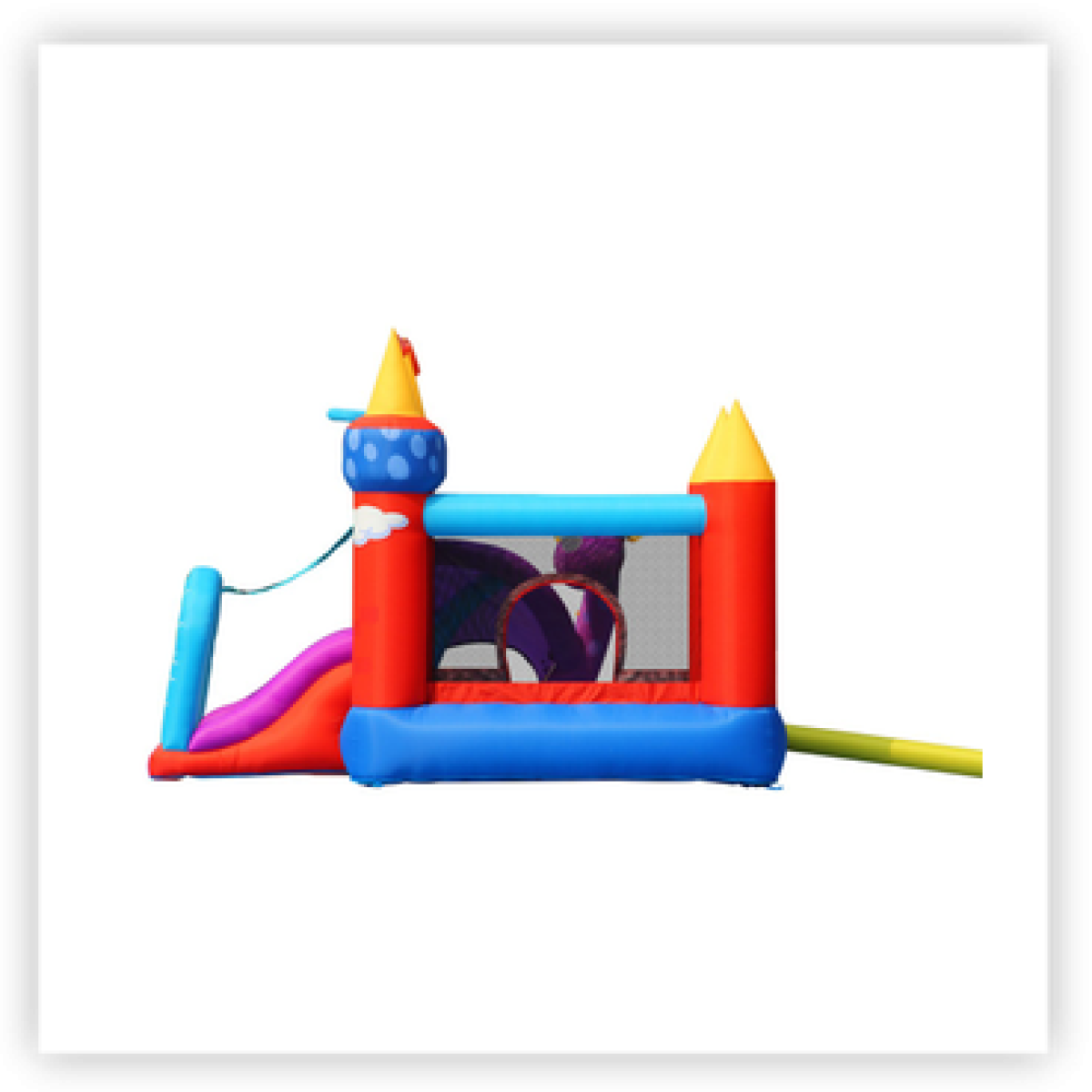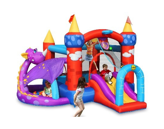 Con il suo design fiabesco ispirato al mondo dei draghi e delle avventure, questo gonfiabile include salterello, scivolo con tunnel, vasca per palline, canestro e tiro a segno, trasformando il giardino in un vero parco giochi domestico.