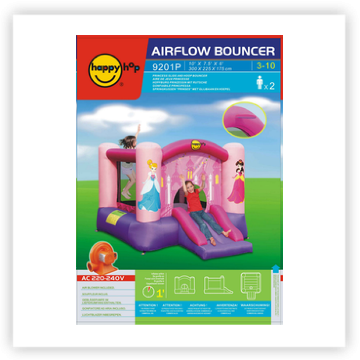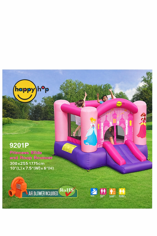 Il Castello Gonfiabile Happy Hop Principessa è una fantastica torre da gioco gonfiabile pensata per bambini dai 3 anni in su, ideale per trasformare il giardino in un vero parco giochi da favola.
