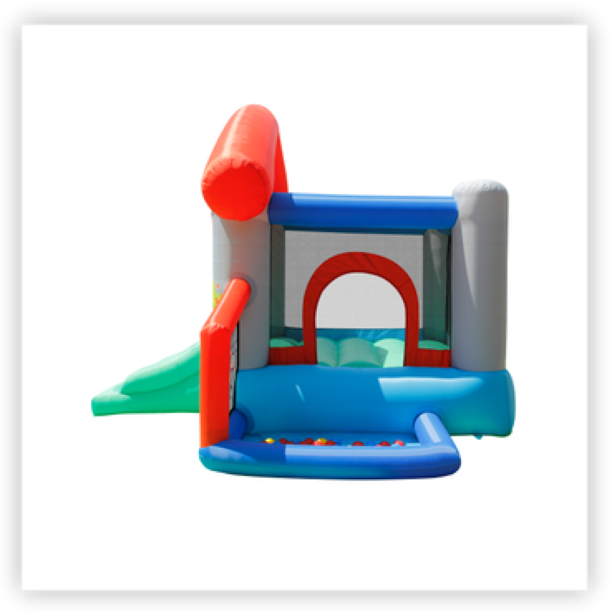Grazie alla sua struttura colorata con area salto, scivolo e vasca con palline, questo gonfiabile offre un’esperienza di gioco completa e coinvolgente, ideale per trascorrere momenti di divertimento con amici e famiglia.