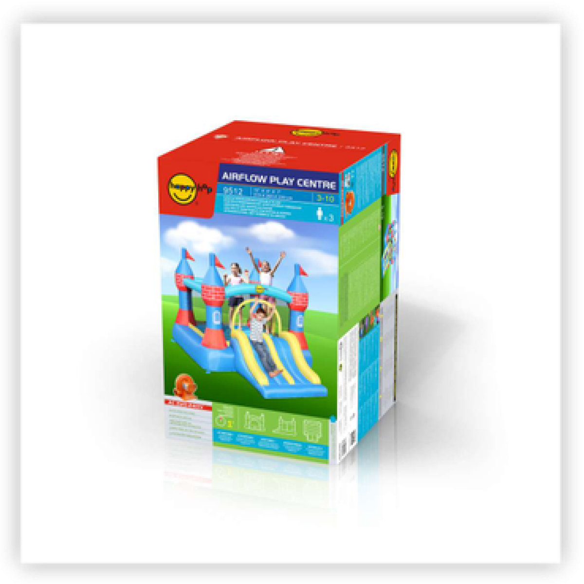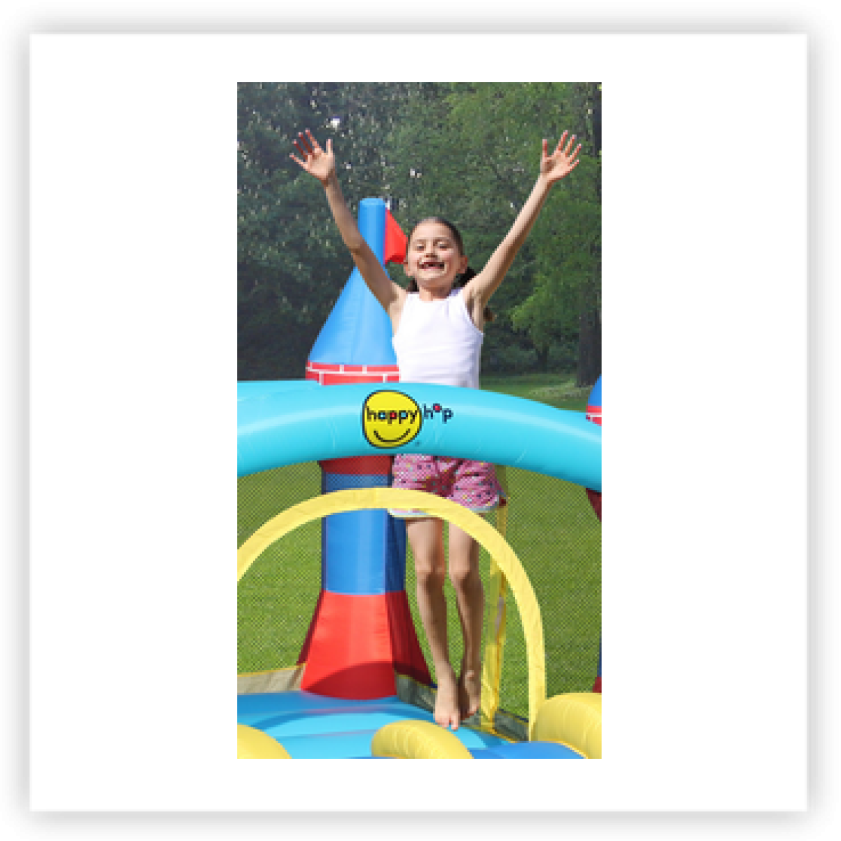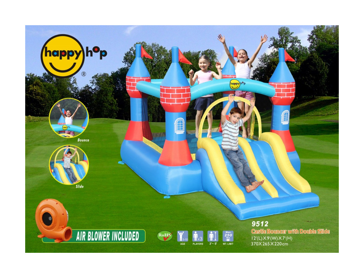 Il Castello Gonfiabile Happy Air Art. 9512 è la nuova versione del top seller Happy Hop, ora ancora più divertente grazie al doppio scivolo che raddoppia il gioco e l’entusiasmo dei bambini.