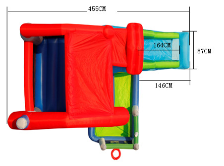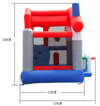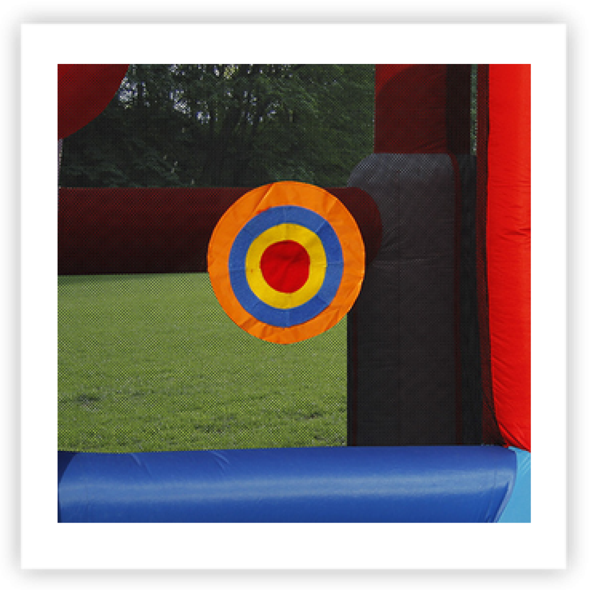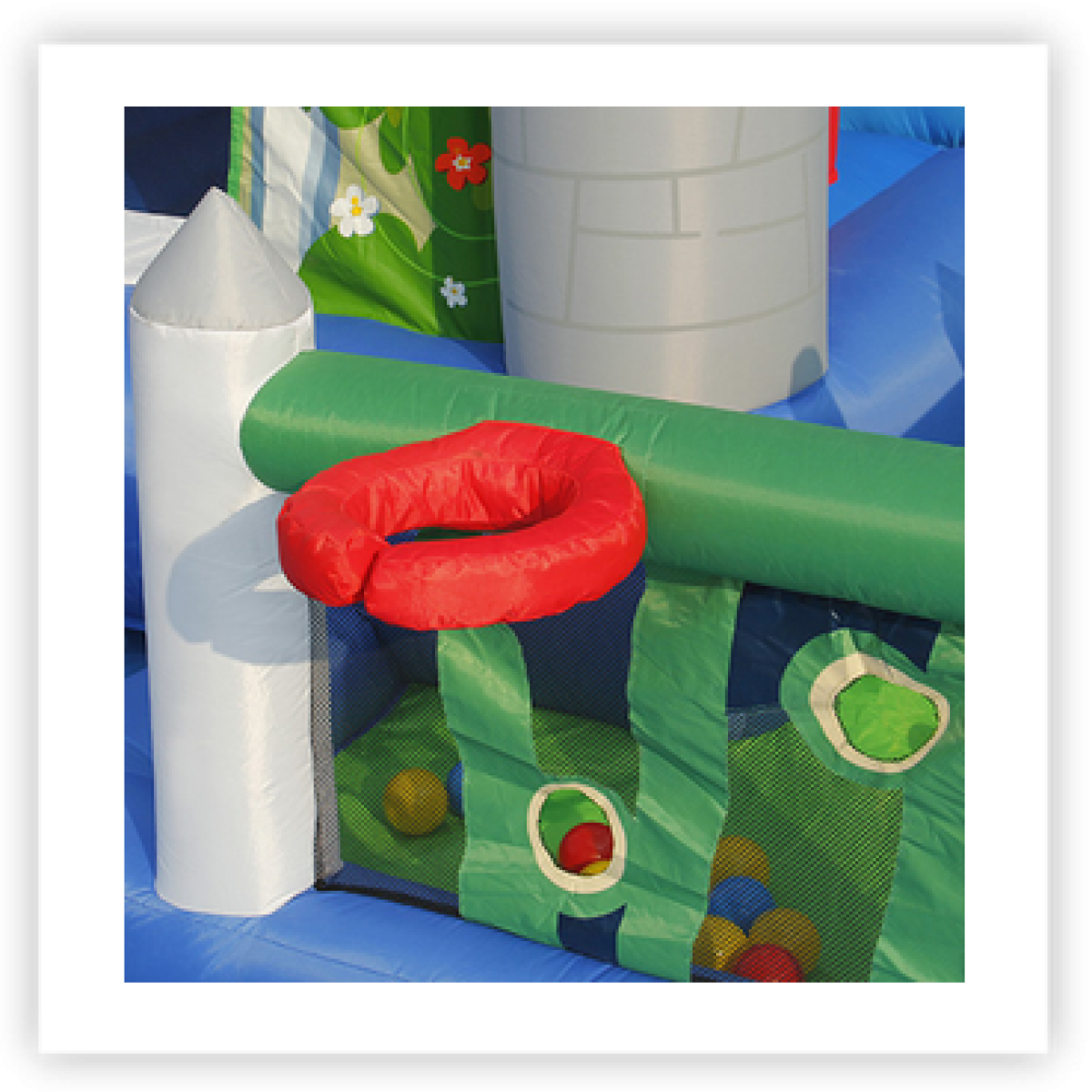 Il castello gonfiabile si gonfia in meno di 1 minuto grazie al motore elettrico incluso, che rimane acceso durante l’utilizzo per mantenere la struttura stabile.