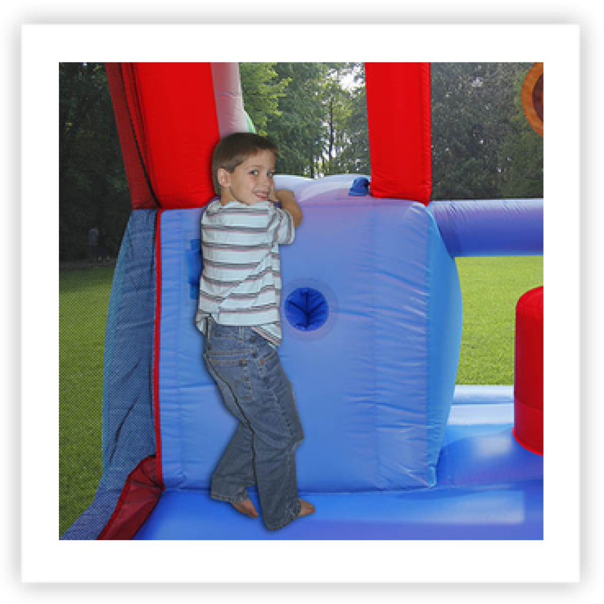 Il gonfiabile è realizzato con PVC laminato e nylon ad alta resistenza, con doppie cuciture rinforzate per garantire maggiore durata.