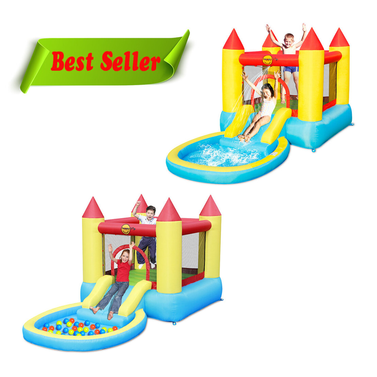 Trasforma il tuo giardino in un vero parco giochi per bambini con il castello gonfiabile Happy Hop 9820, un divertente gioco 2 in 1 con area salto, scivolo e piccola piscina pensato per far divertire i bambini in sicurezza durante le giornate all’aperto.