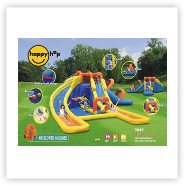 Il parco acquatico gonfiabile Happy Hop 9045 è la scelta perfetta per chi desidera un gonfiabile gigante, completo e spettacolare, capace di regalare ore di divertimento ai bambini direttamente a casa.