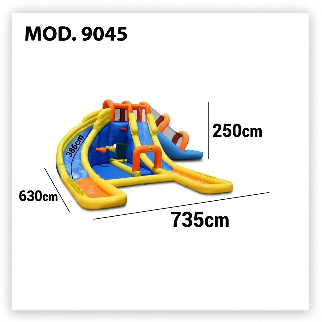 Il parco acquatico gonfiabile Happy Hop 9045 è il modello più grande e completo della gamma Happy Hop, progettato per trasformare il giardino in un vero mega parco divertimenti acquatico per bambini.