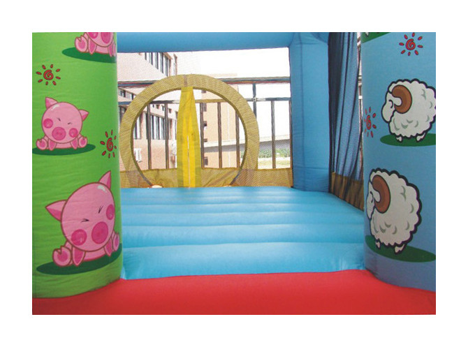 Entra in un mondo di pecore, mucche e maialini grazie al nostro castello Fattoria! Completo di scivolo di piccole dimensioni, vasca per palline, canestro e superficie per saltare. Fantastici disegni di diversi animaletti della fattoria