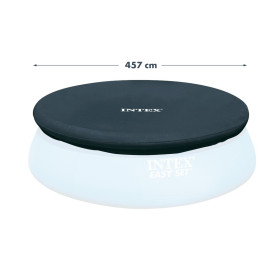 Intex 28023 è il telo di copertura universale versione NUOVA adatto a piscine rotonde fuori terra autoportanti (PISCINE GONFIABILI) con diametro 457 cm. Il telo evita che vento e insetti sporchino l'acqua della vostra piscina. La copertura, realizzata in PVC, è dotata di fori che impediscono accumuli d'acqua e lacci per fissarla. Il telo protettivo si adatta a tutte le piscine rotonde di diametro 457 cm, anche di altre marche (come Bestway).