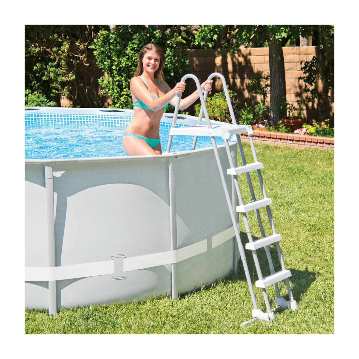 La struttura esterna dei gradini della scala Intex 28077 è estraibile per permetterne la messa in sicurezza nel caso di presenza di bambini nell'area della piscina.