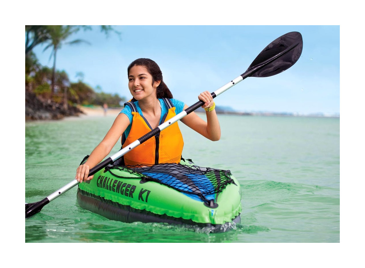 Intex 68305 Challenger K1 è il Kayak gonfiabile professionale di Intex versione 2016 dotato di design sportivo, abitacolo confortevole e struttura ultra-resistente ad urti ed abrasioni.