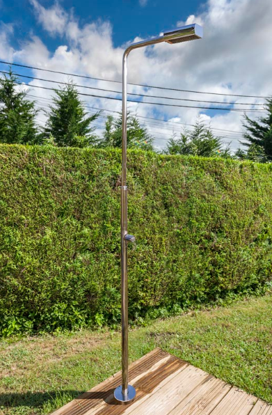La doccia in acciaio inox DAI43 è una soluzione pratica e resistente per rinfrescarsi in giardino o a bordo piscina.