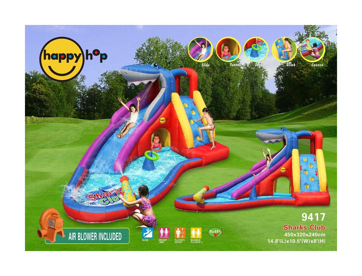 Castello gonfiabile acquatico Happy Hop Scivolo Squalo GONFIABILE ACQUATICO SCIVOLO SQUALO ? HAPPY HOP 9417 Gioco gonfiabile scivolo squalo art.9417 mis.450 ? 320 cm