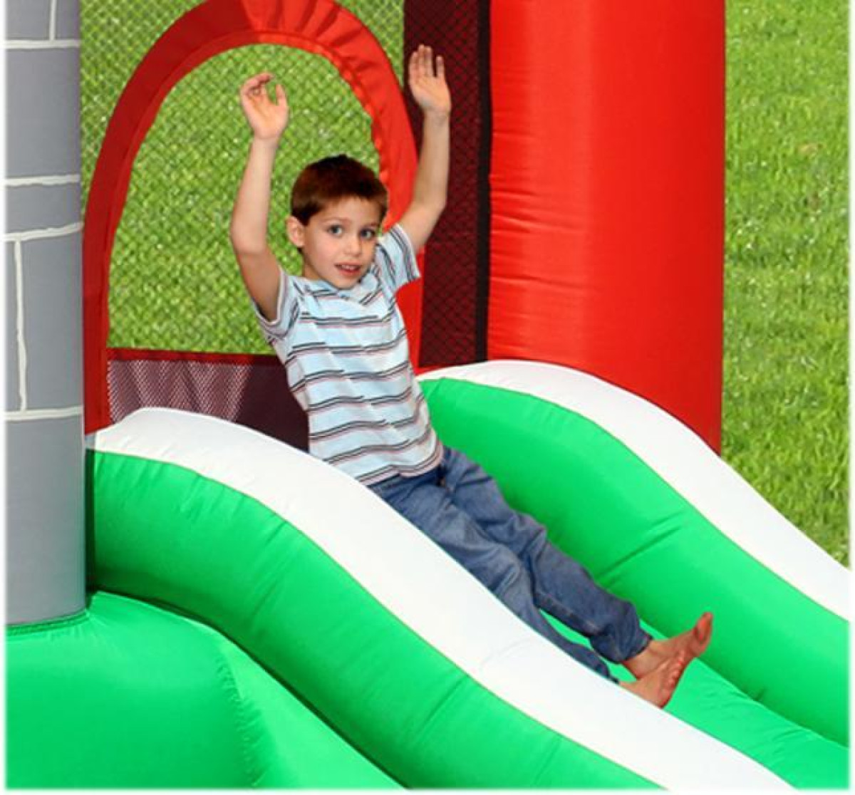 Il castello si gonfia in pochi minuti grazie al motore incluso, permettendo di preparare rapidamente l’area gioco.