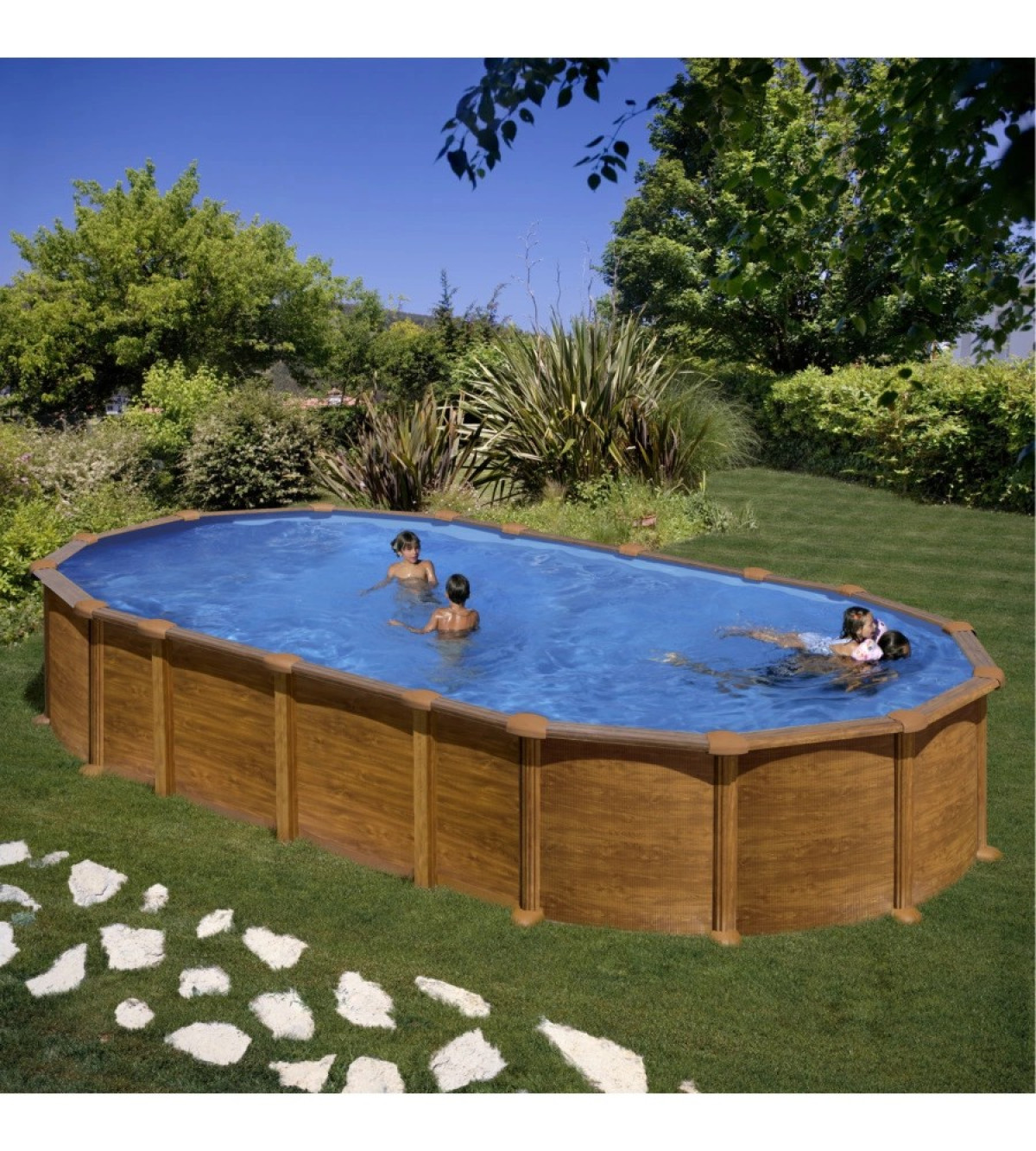 La piscina fuori terra Amazonia 730x375x132 cm rappresenta l’evoluzione delle piscine ovali: grazie al sistema innovativo con barre interrate, elimina i classici ingombri laterali e ti offre più superficie di nuoto occupando meno spazio esterno.