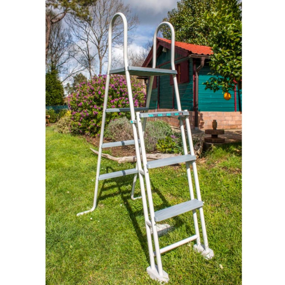 Scala di sicurezza con piattaforma e 6 gradini (rimovibili per sicurezza bambini)