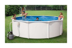 Piscina fuori terra componibile in acciaio ondulato preverniciato con uno speciale trattamento anticorrosivo.