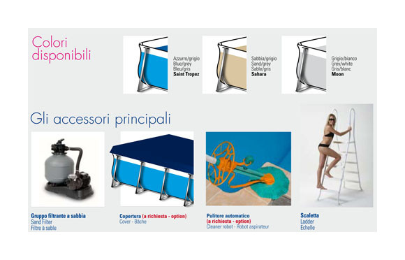Aruba 700 TOP è una piscina completa dotata del gruppo filtrante a sabbia e di tutti gli accessori necessari.