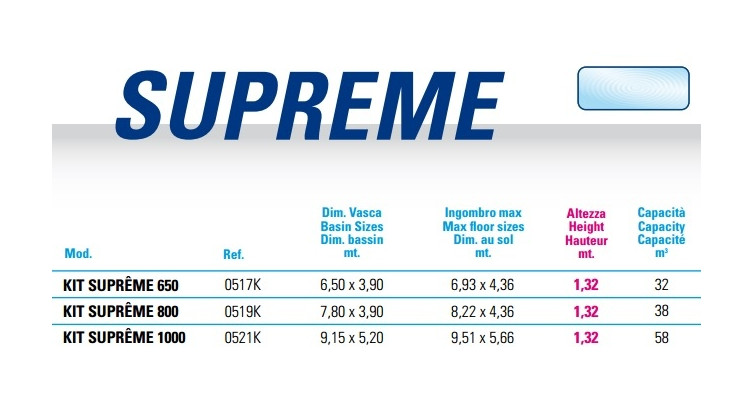 I modelli Supreme sono un?ulteriore proposta Technypools proggettati nell?ottica di un orientamento del mercato verso maggiori profondità.