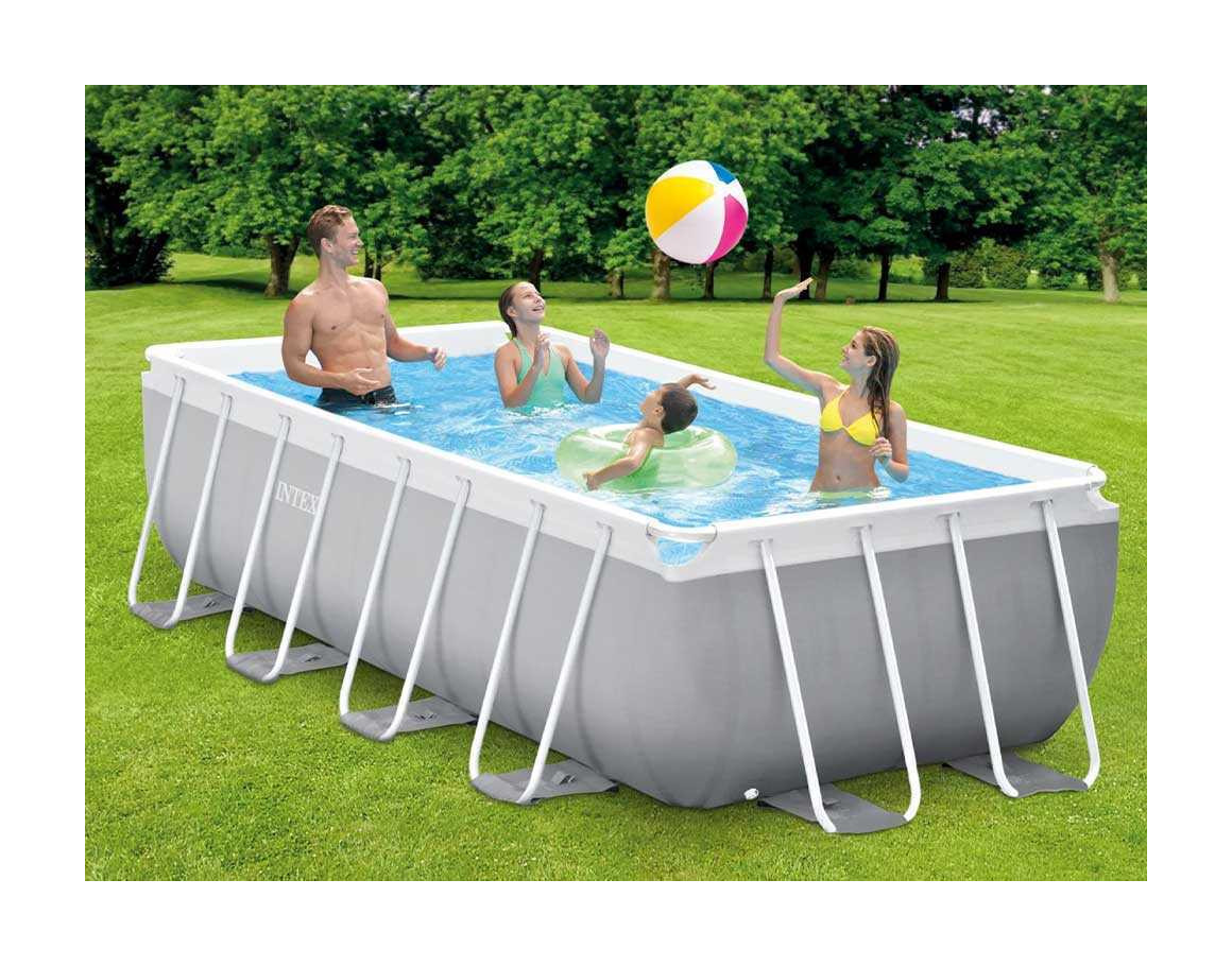 La linea di piscine Intex Prism Frame rettangolari è facile da assemblare e la struttura portante realizzata in tubolari è davvero solida. Il pvc di Intex 26792 (Nuovo Modello della versione 26778) si compone di tre strati: uno strato interno ed esterno in PVC spesso e resistente e uno intermedio in poliestere.