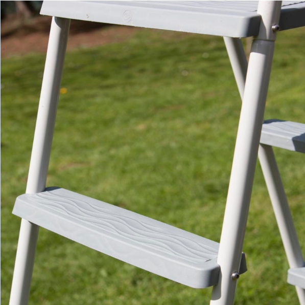 Realizzata in acciaio zincato con gradini in polipropilene, garantisce resistenza agli agenti atmosferici e una lunga durata nel tempo.