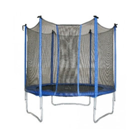 TAPPETO ELASTICO con struttura in metallo e rete di protezione. Resistente e sicuro. Portata max 100 kg, diametro 183 cm, altezza 200 cm. Certificato CE di conformita'. Adatto dai 6 anni in su.