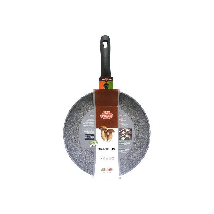 La sua superficie di cottura è realizzata con piccole particelle di pietra unite che la convertono nella padella più resistente del mercato. Granitium si riscalda rapidamente e mantiene il calore per più tempo.La superficie in pietra è dieci volte più resistente e dura dieci volte più a lungo dei normali rivestimenti antiaderenti.Quindi non brucia non scolorisce e non si squama.La padella Granitium è perfetta perché può raggiungere alte temperature.E? la migliore padella in assoluto. Esalta il vero sapore del cibo. Con Granitium potete cucinare molluschi frutti di mare cozze ostriche? senza il rischio di rovinarla. Potete anche usare un cucchiaio di metallo senza graffiarla.Potrete cucinare in modo più salutare infatti non occorre aggiungere olio o altri grassi.Con le normali padelle i succhi naturali del cibo fuoriescono e rimangono in superficie.Granitium cuoce il cibo esternamente mantenendone i succhi all?interno. Così la carne e il pesce sono più teneri succosi e gustosi. Le verdure sono più croccanti e cotte alla perfezione.