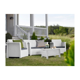 Set da giardino dal design ergonomico in polyrattan composto da un tavolino, un divanetto a due posti e due poltrone colore BIANCO .