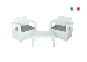 Il Salottino Filippo, è composto da uno stampo unico, quindi non ha nessuna usura ed inoltre essendo fatto con resina di 1 qualità non perde il colore restando all?aperto.