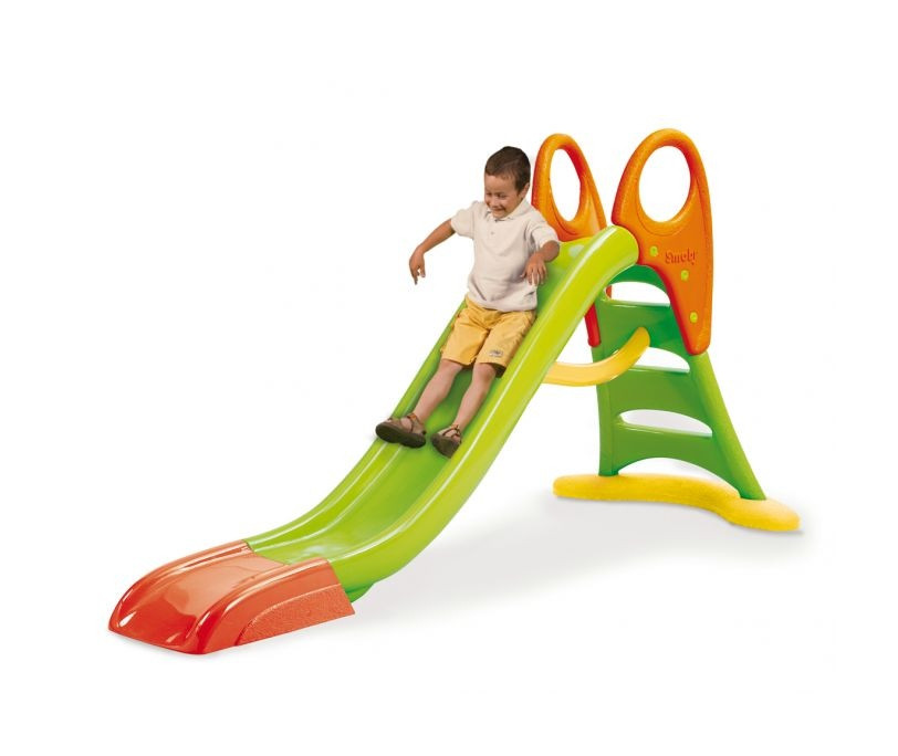 La sicurezza e la stabilità sono assicurati dall?ampia base, un supporto per la scivolata e una scala in plastica soffiata. La scala ha impugnature ergonomiche e scalini anti-sdrucciolo.