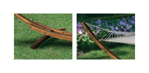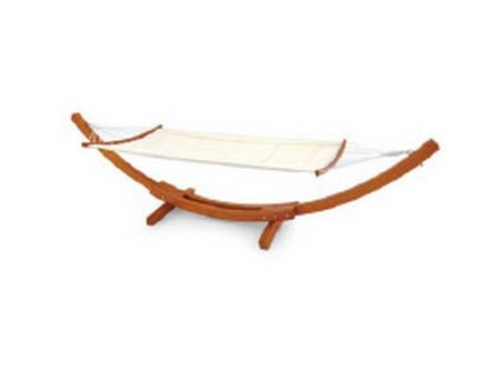 Amaca in cotone colore beige ? Supporto in legno di larice verniciato finitura color teak