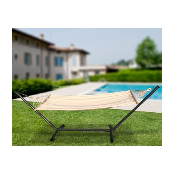 - Completa di amaca in cotone (320gr/sqm) colore naturale 200?100 cm.