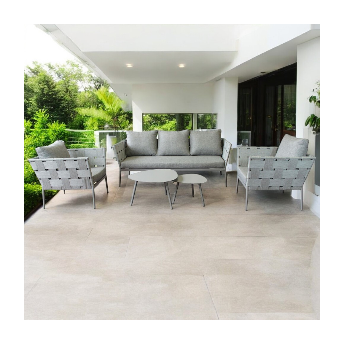 Il terrazzo è un luogo da sfruttare dove poter godersi a pieno le sue potenzialità, per questo nasce questo salottino da esterni dalle linee moderne realizzato in alluminio e ricoperto da morbidi cuscini.