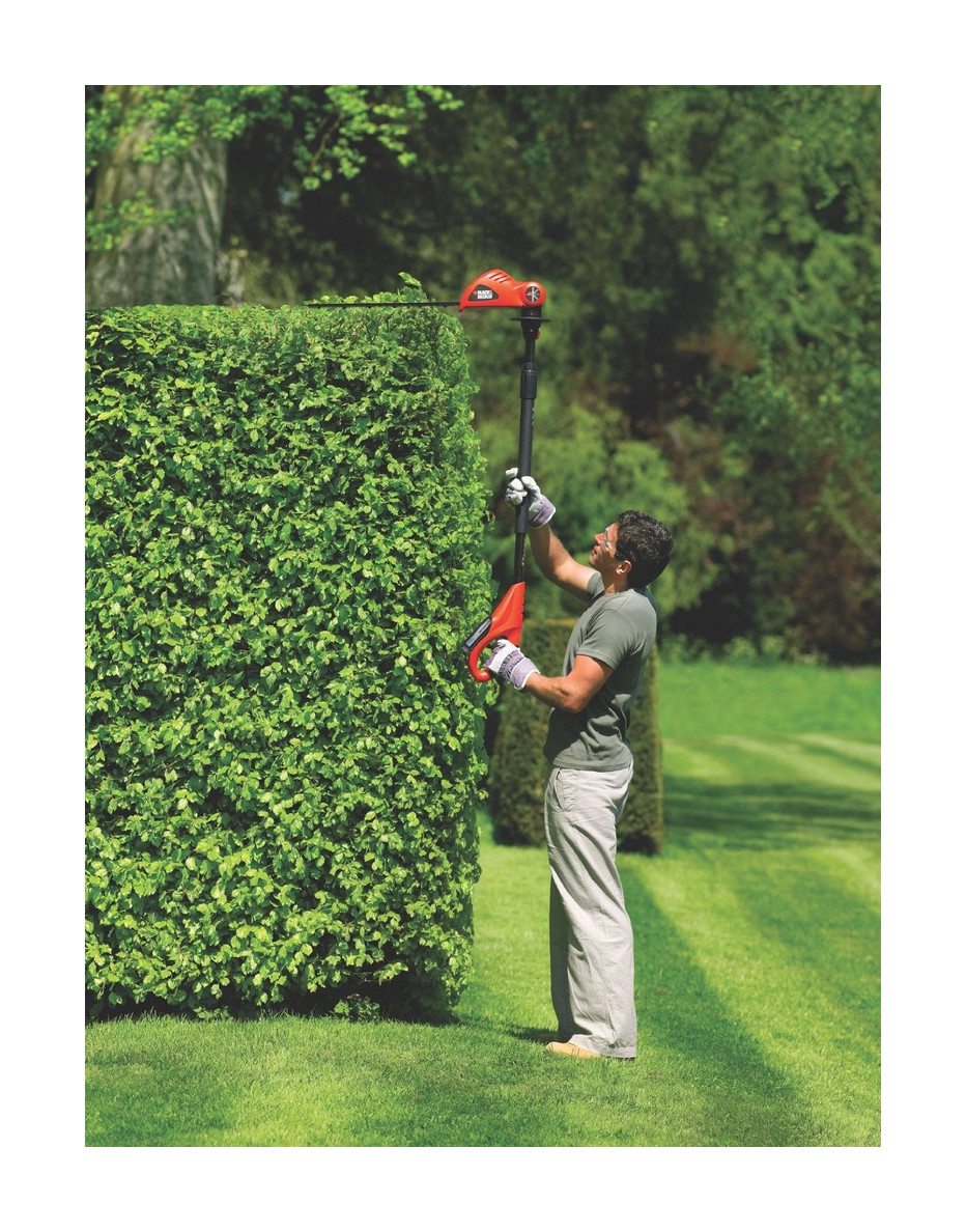 Descrizione generale Tagliasiepi con asta prolunga e testa orientabile 5 posizioni fino a 180° ideale per la regolazione delle siepi e piante ornamentali senza l'utilizzo di scale. Confortevole e sicuro e dal peso ottimamente bilanciato è dotato di doppio interruttore di sicurezza per l'avviamento